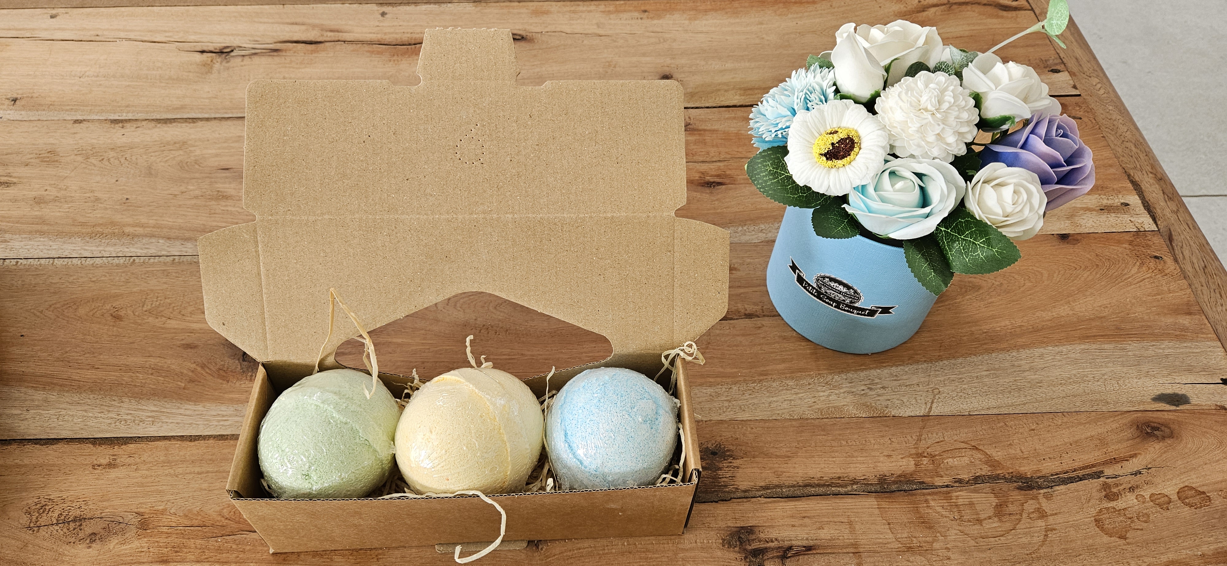 Už tris tokio paties dydžio vonios bombas, įsigytas iš bet kurio asortimento, gausite nemokamoje natūralaus stiliaus kartoninėje dovanų dėžutėje.