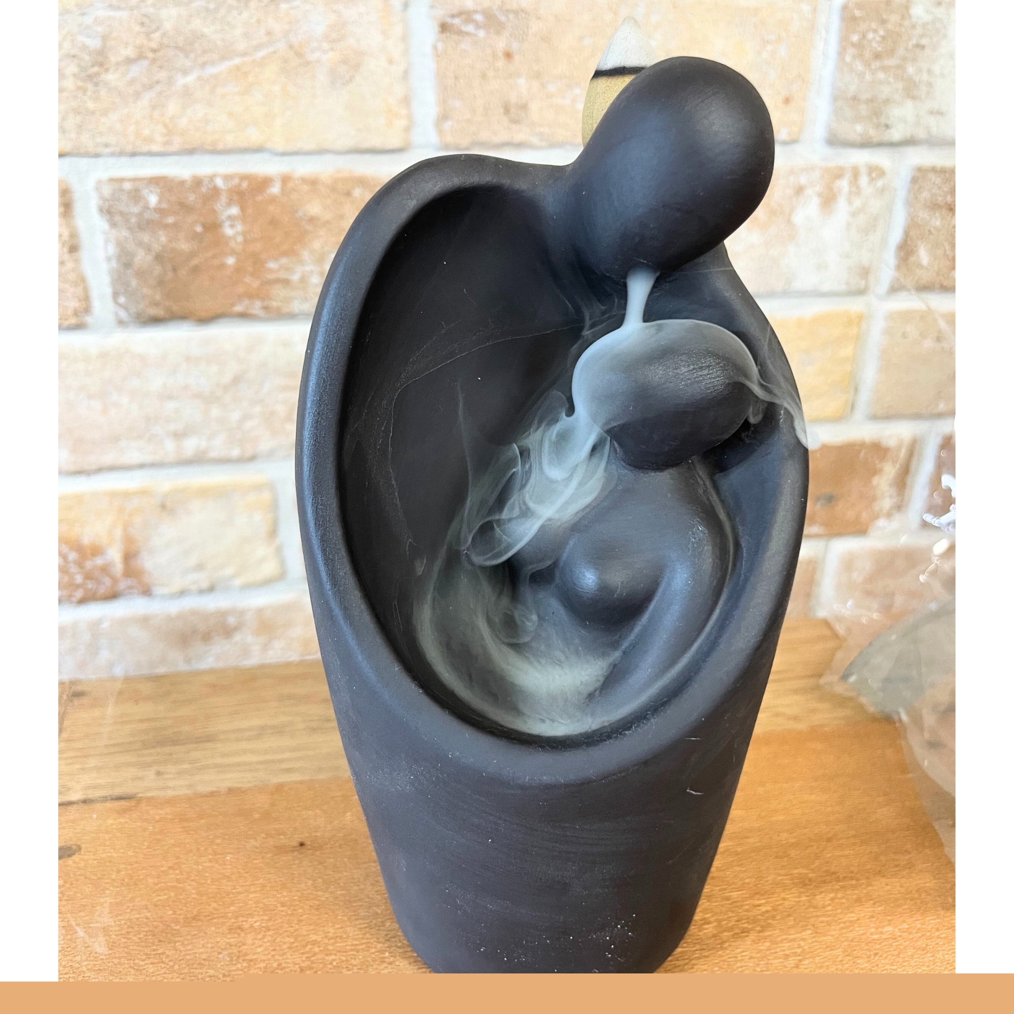 Romantika atgyja su Tavo meilužio glėbyje Atgalinis smilkalų degiklis. Šiame kūrinyje yra intymus dviejų figūrų apkabinimas, kurių formos sklandžiai susilieja. Smilkalams degant, jų glėbį išryškina subtilus kvapnių dūmų srautas, sukuriantis romantišką ir žavią atmosferą.