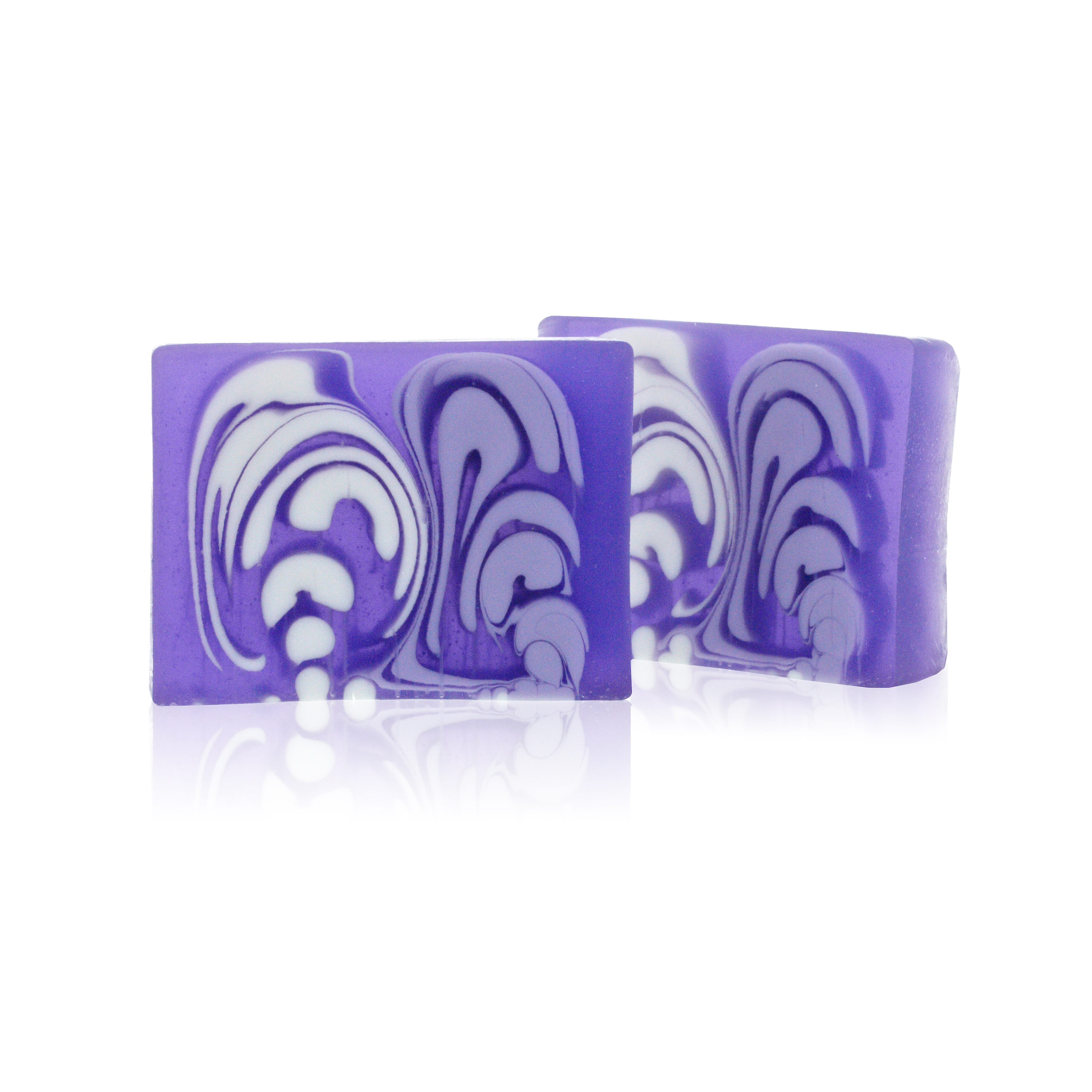 Naujas rankomis pagamintų levandų muilų asortimentas, pagamintas iš aukščiausios kokybės ingredientų, naudojant lydymosi ir pilimo metodą.