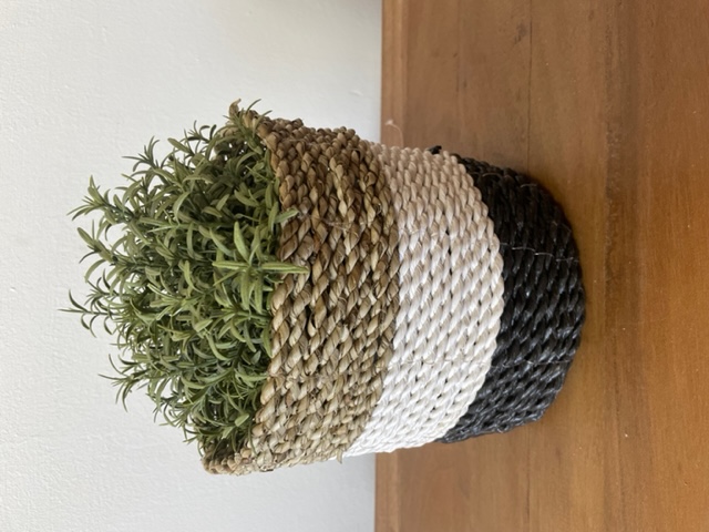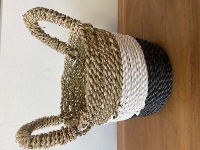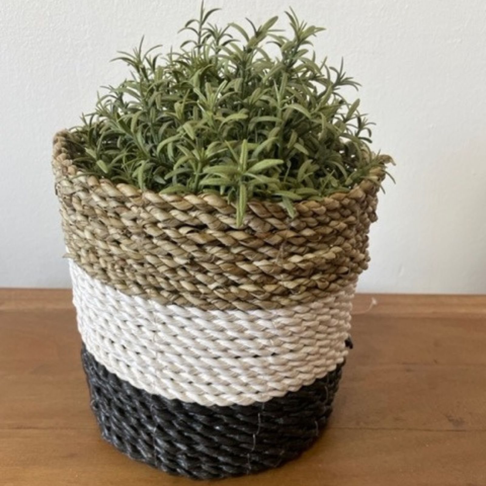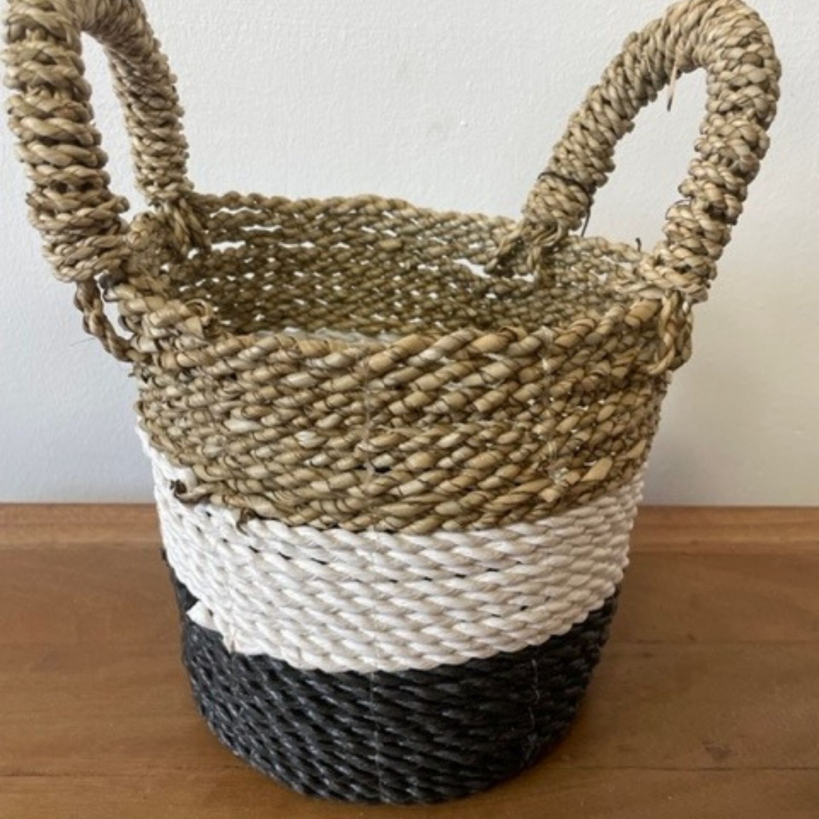 Parduodama po 3 rinkinius. Kiekvienas krepšelis yra rankų darbo iš ekologiškos jūros žolės. Šis lengvai laikomas trijulė idealiai tinka dovanų krepšeliams, netgi gali būti naudojamas kaip prašmatnus gėlių vazonas. Didžiausias turi viršutinę rankeną.