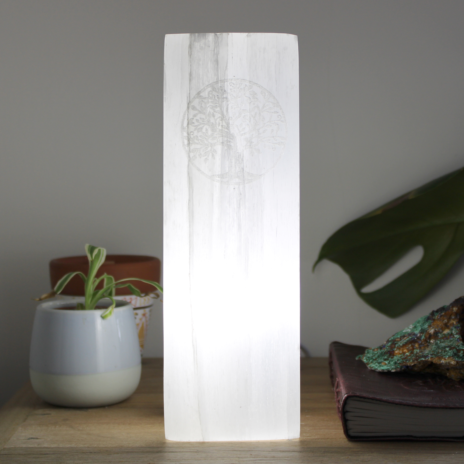 Selenito blokinis šviestuvas 25cm - Gyvybės medis