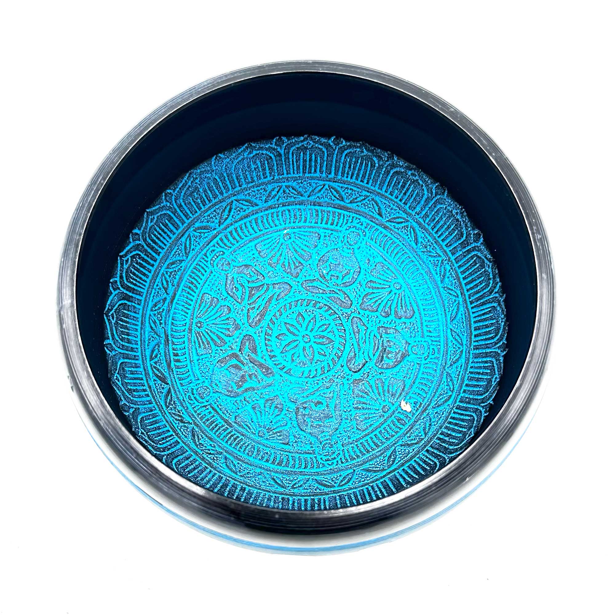 Šio dainuojančio dubenėlio skleidžiamos raminančios vibracijos gali sumažinti stresą ir paskatinti atsipalaiduoti. Mėlynosios mantros penkių Budų dizainas simbolizuoja dvasinį nušvitimą ir ramybę.